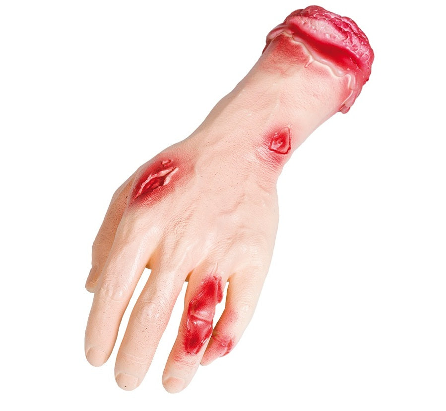 Blodig avhuggen hand tillverkad i plast. En realistisk och skrämmande dekoration som passar perfekt till halloween och skräckteman.