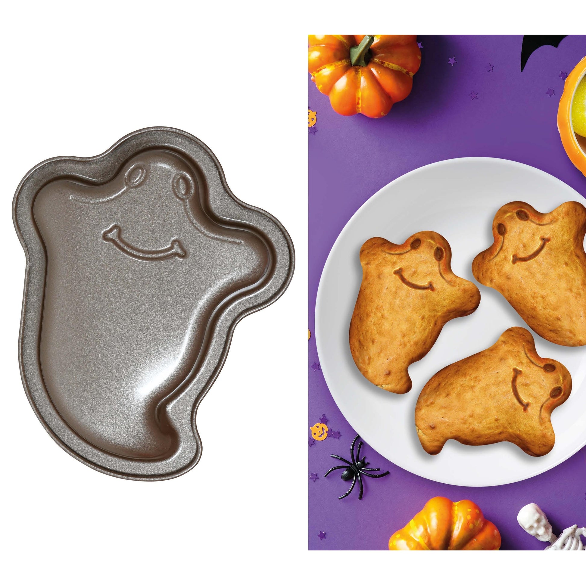 Stadig kakform i metall formad som ett spöke – perfekt för att baka temakakor till Halloween. Formen är 14 cm hög och 11,5 cm bred, med tydliga konturer för ett tydligt resultat.