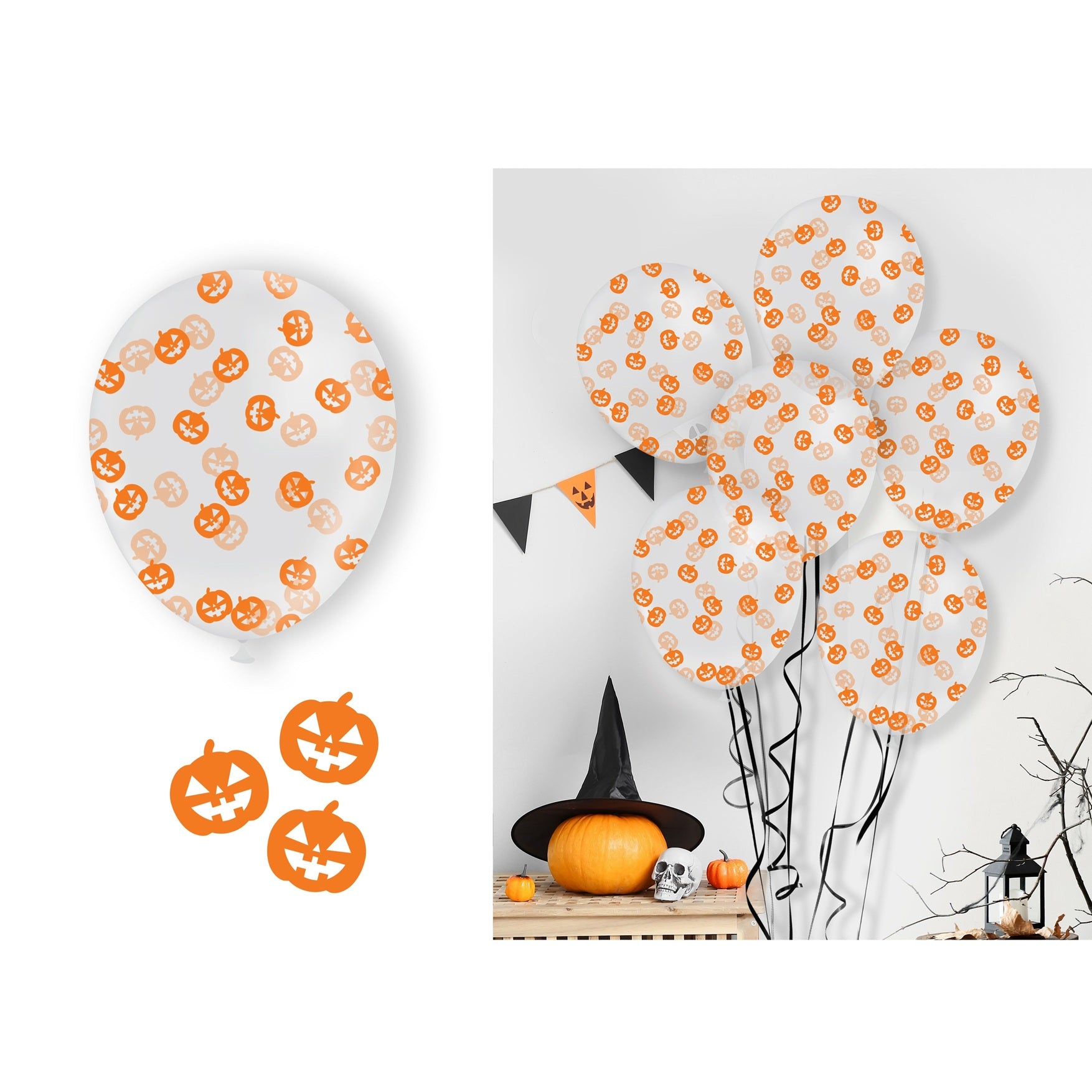 Ett set med tio dekorativa pumpor, täckta av många små pumpmotiv för en extra festlig halloweenlook. Perfekta som bordsdekoration, till pyssel eller för att skapa rätt stämning på festen.