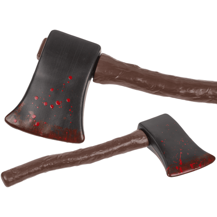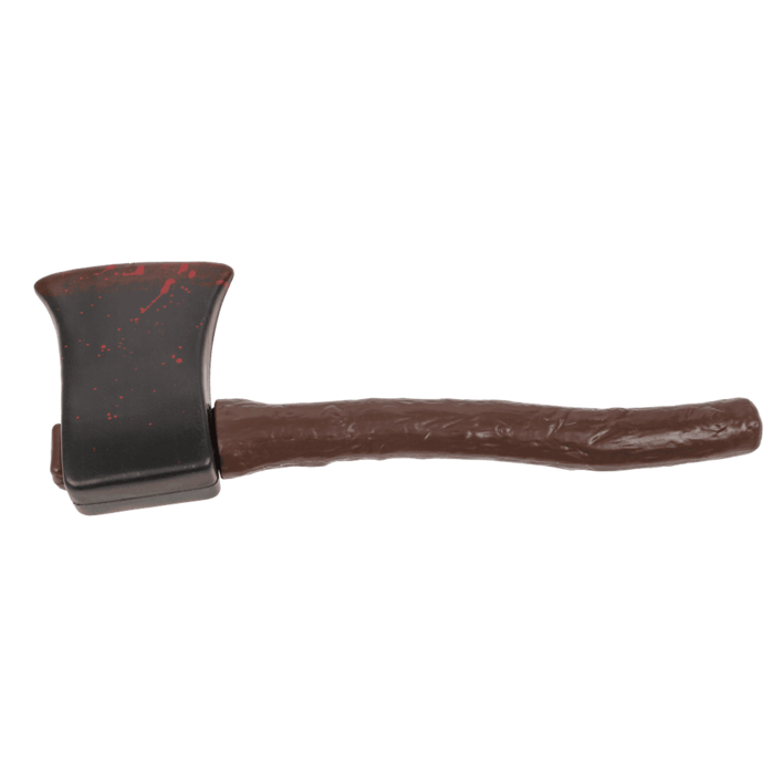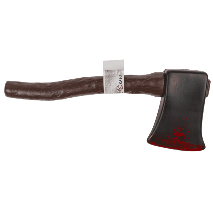 Blodig yxa i plast, med realistiskt stänkdesign. Storlek ca 40 x 7 cm. Perfekt som accessoar till halloweenkostymer eller skrämmande dekoration.