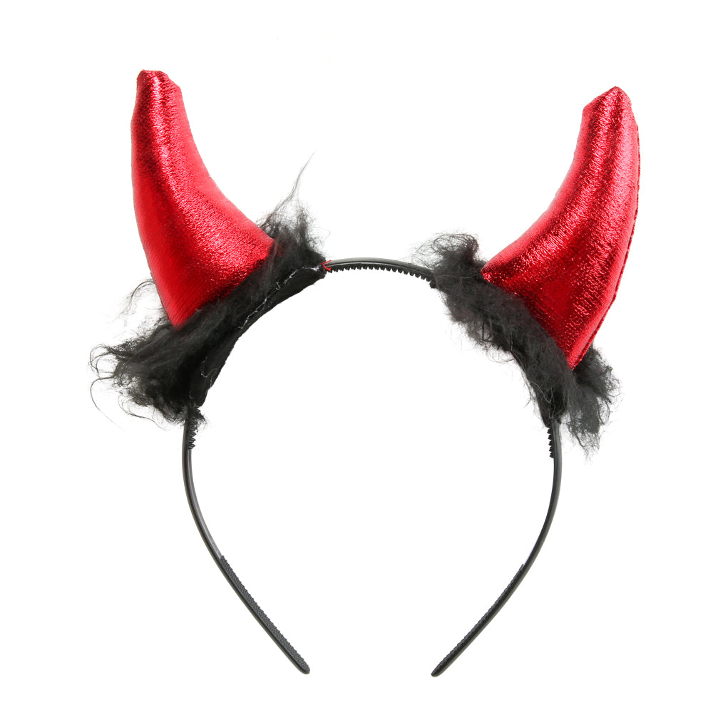 Diadem med djävulshorn och hår vid hornroten. En dramatisk och lekfull accessoar som passar perfekt till halloween, maskerad eller temafester. Passar de flesta vuxna och äldre barn.