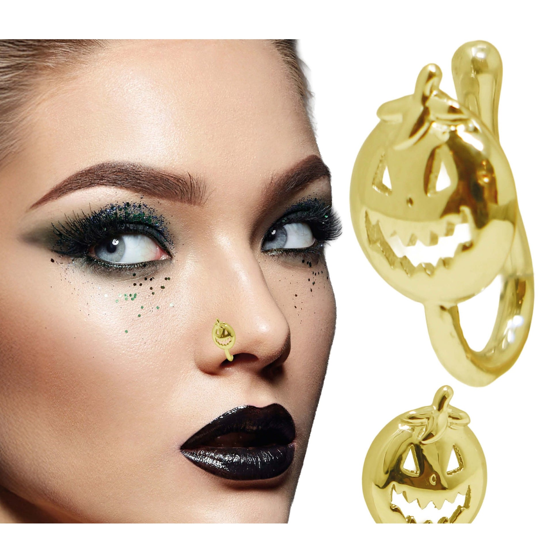 Guldfärgad näsring i form av en pumpa, näsringen sitter fast med en klämma, du behöver alltså inget hål i näsar för att använda denna produkt.