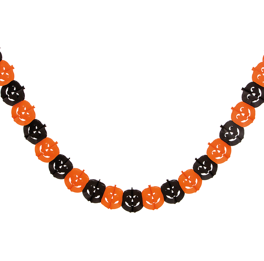 Halloweenpumpagirlang, 3 meter lång. Tillverkad i papper och perfekt att hänga som dekoration inför halloween. Skapar en festlig och klassisk stämning med pumpamotiv.
