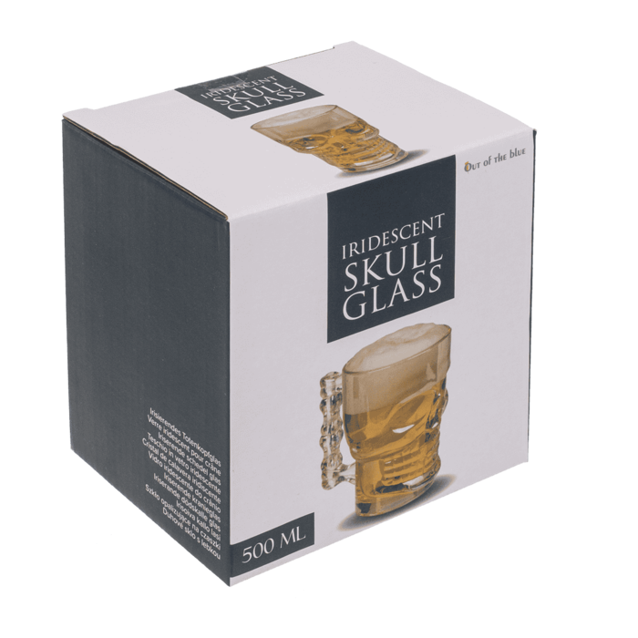 Dryckesglas i form av en dödskalle, rymmer ca 500 ml. Storlek ca 9,3 x 7 x 12,5 cm. Levereras i presentförpackning. Perfekt för halloween eller temafester.