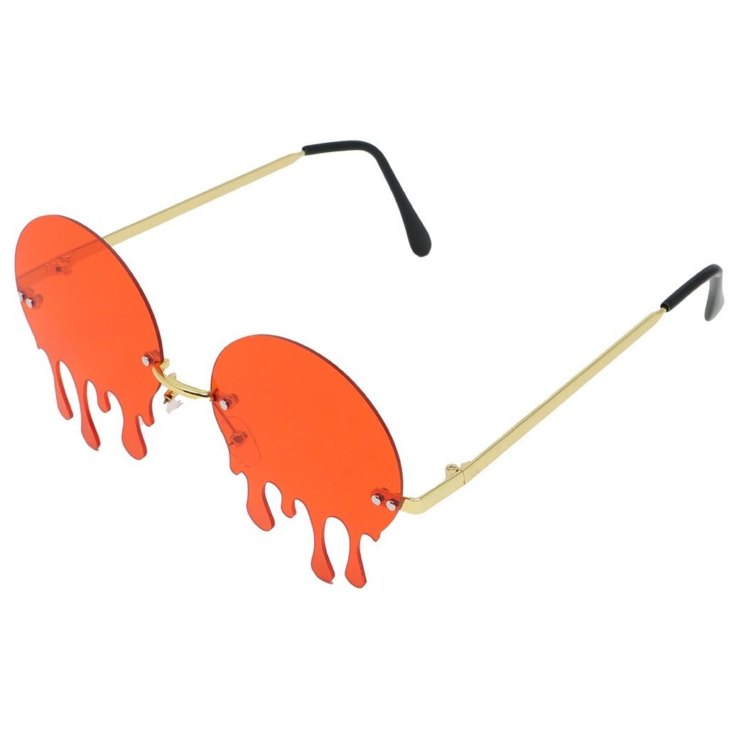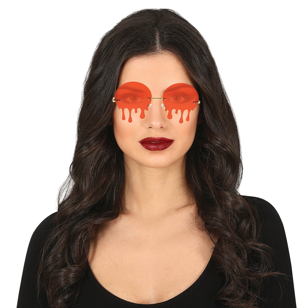 Röda glasögon med bloddroppar – ett enkelt tillbehör som passar perfekt till Halloween eller skräcktema. Dekorativa och avsedda för vuxna, ej med styrka.