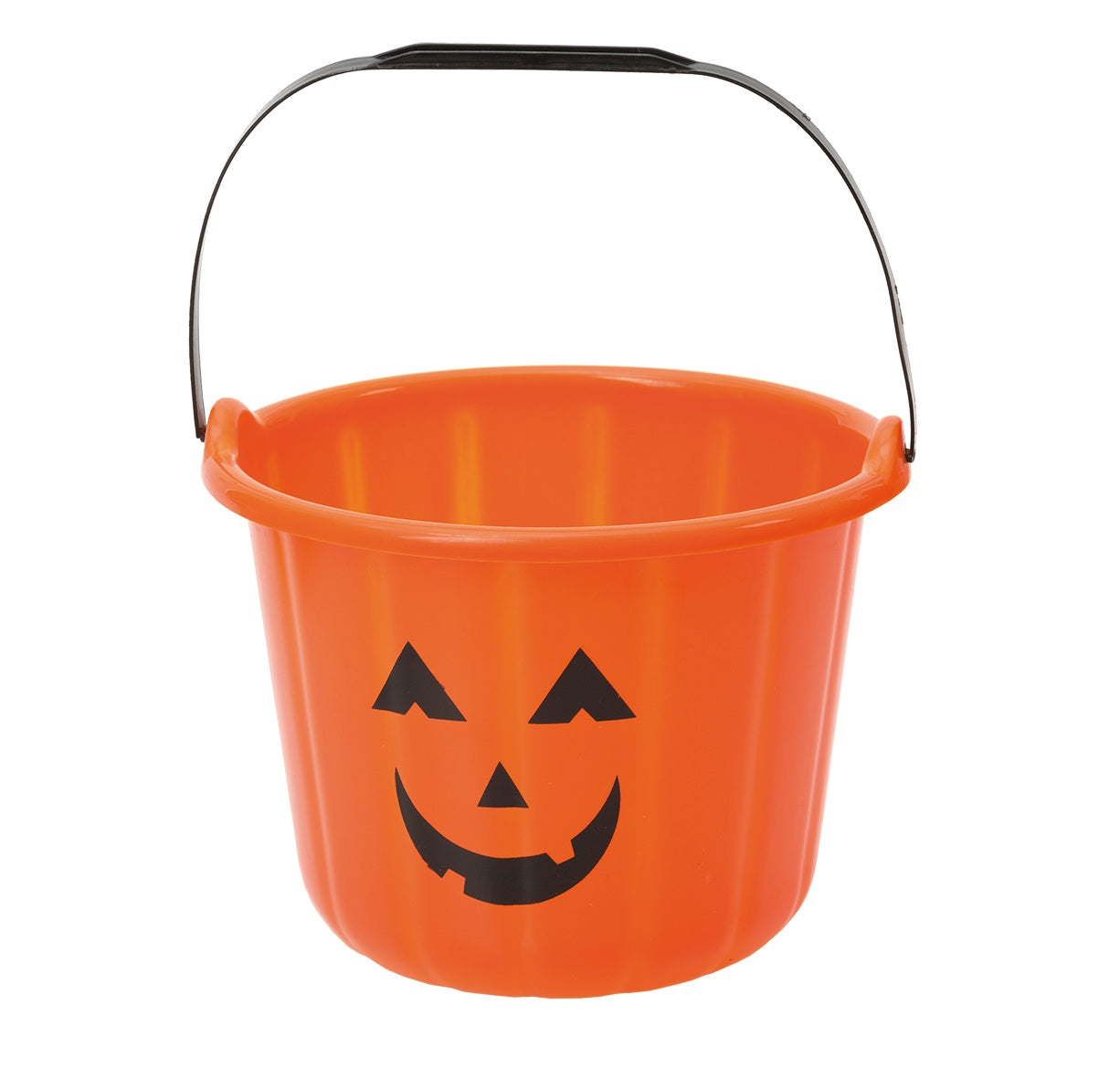 Godishink för halloween i form av en orange pumpa. Tillverkad i hårdplast med handtag för enkel bäring. Diameter ca 19 cm, höjd ca 14 cm. Perfekt för att samla godis under "bus eller godis"-rundor eller som en rolig godisskål på Halloweenbordet.