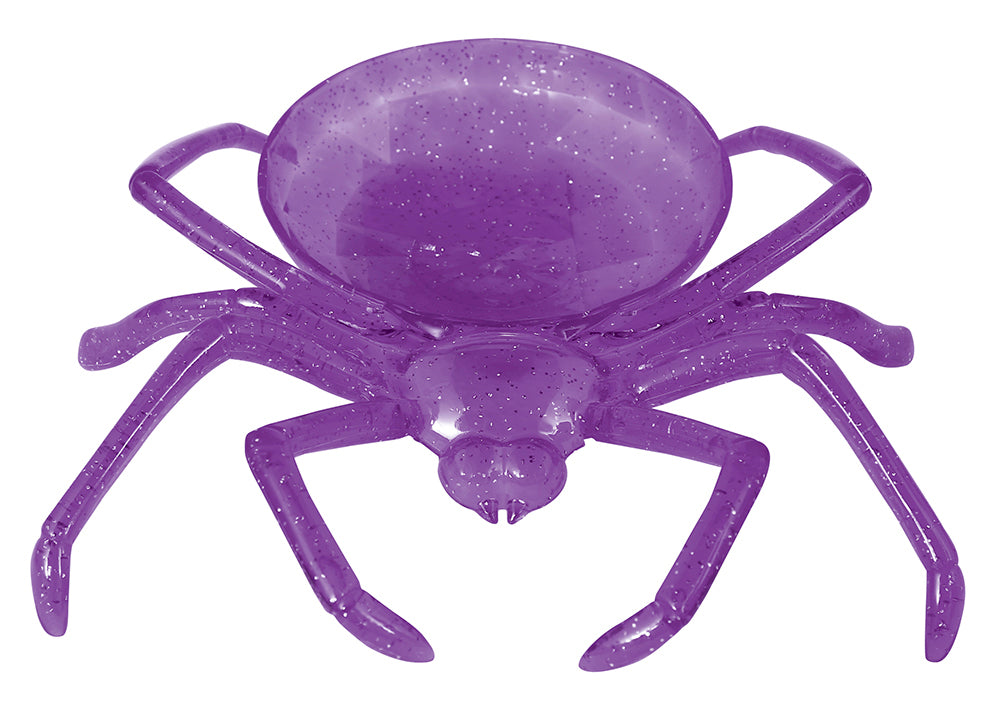 Liten godisskål i lila i spindelform som dekoration. Perfekt till Halloween-snacks, smågodis eller dekoration på festbordet.