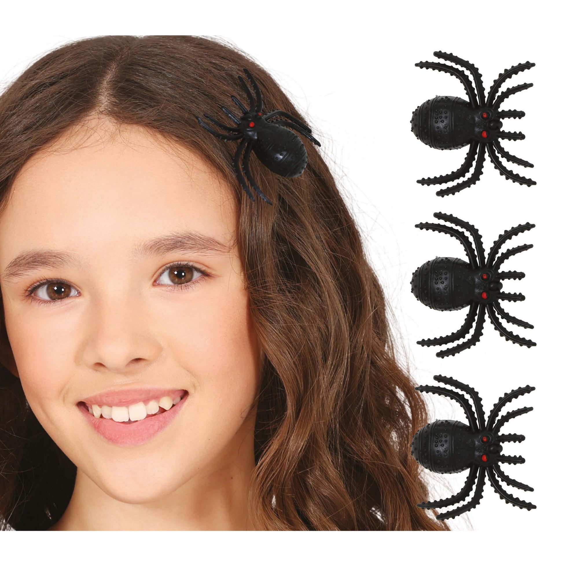 Små men effektfulla hårklämmor formade som spindlar – perfekta för att ge frisyren en läskigt rolig touch till halloween.