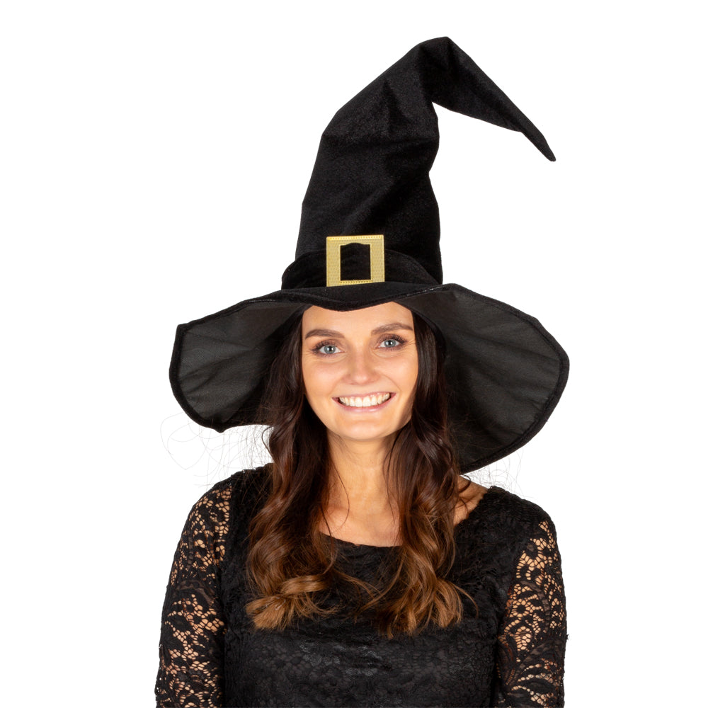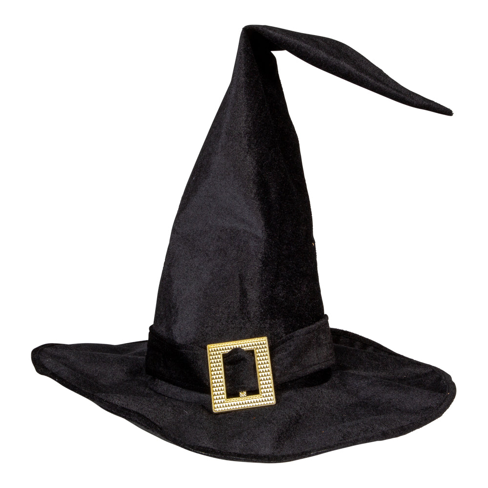 Lång svart häxhatt med klassisk spetsig form, perfekt för de mest fasansfulla häxorna. En stämningsfull accessoar till halloween, teater eller maskerad.