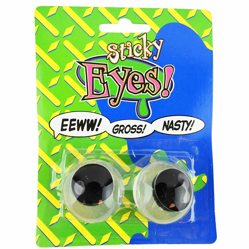 Kladdiga ögon i set om 2 stycken, cirka 2 cm i diameter. Mjuka och stretchiga, roliga att kasta och fästa på ytor. CE-märkta.