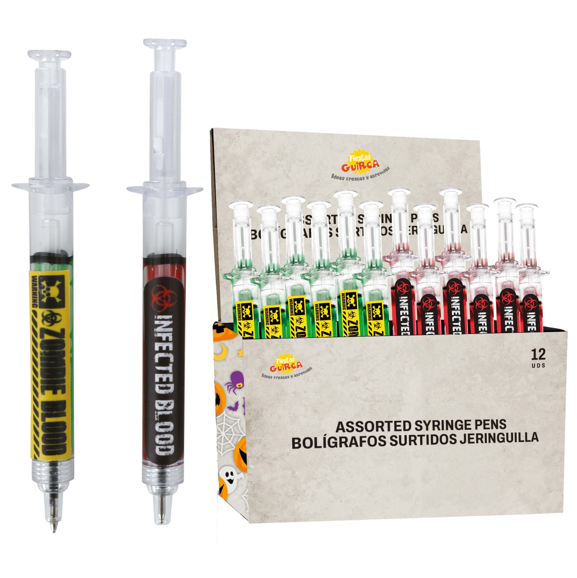 En skojig penna utformad som en spruta fylld med färgad vätska – perfekt som liten halloweenpryl, partyfavorit eller kul detalj i skolbänken. Ger skrivandet en busigt läskig twist!