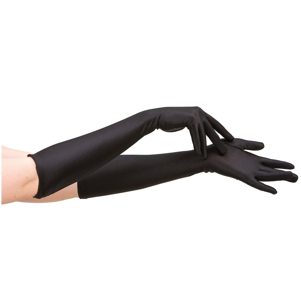 Långa handskar tillverkade av polyester. Eleganta och mångsidiga, passar perfekt till maskerad, halloween eller temaklädsel.