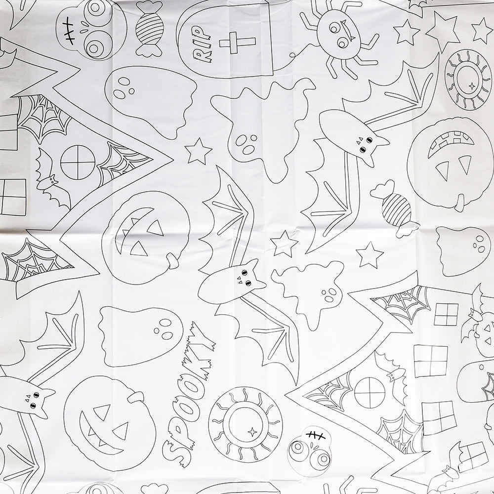 Bordsduken är täckt med läskigt roliga mönster att fylla i, allt från pumpor till spöken och fladdermöss. Låt fantasin flöda och skapa en unik duk som blir mittpunkten på bordet.