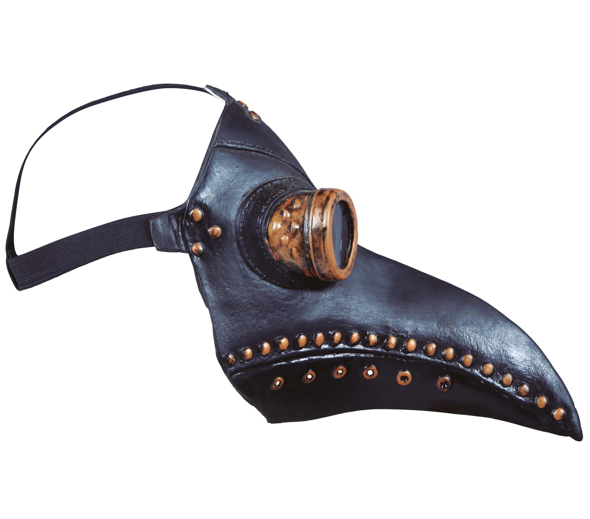 Klassisk pestläkarmask i latex med lång näbb, inspirerad av historiska masker från medeltiden. Passar perfekt till Halloween, skräckteman eller maskerader.