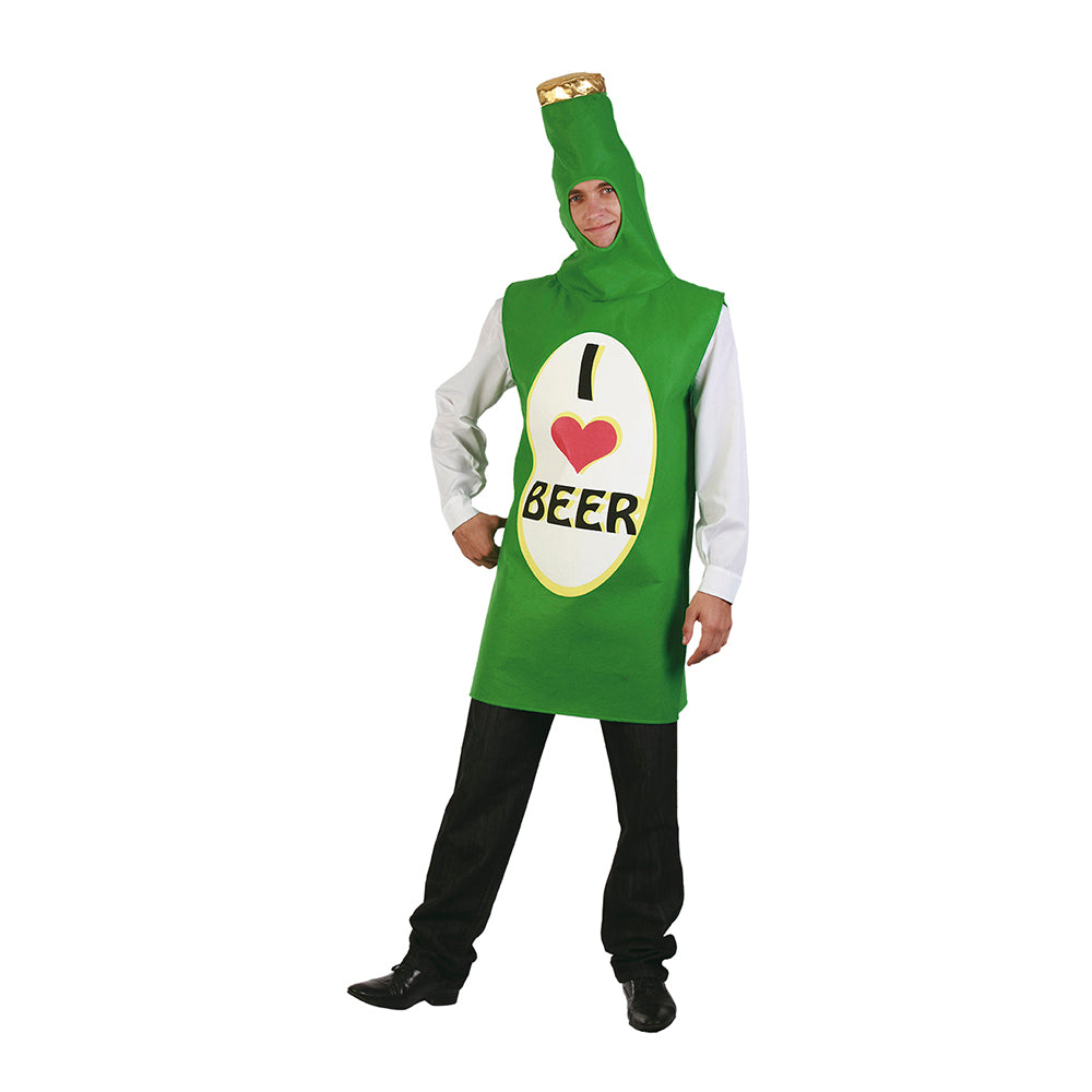 En rolig och iögonfallande maskeraddräkt formad som en ölflaska. Dräkten bärs enkelt ovanpå dina vanliga kläder och har trycket I ❤️ Beer framtill. Perfekt till halloween, maskerad eller temafester med humor.