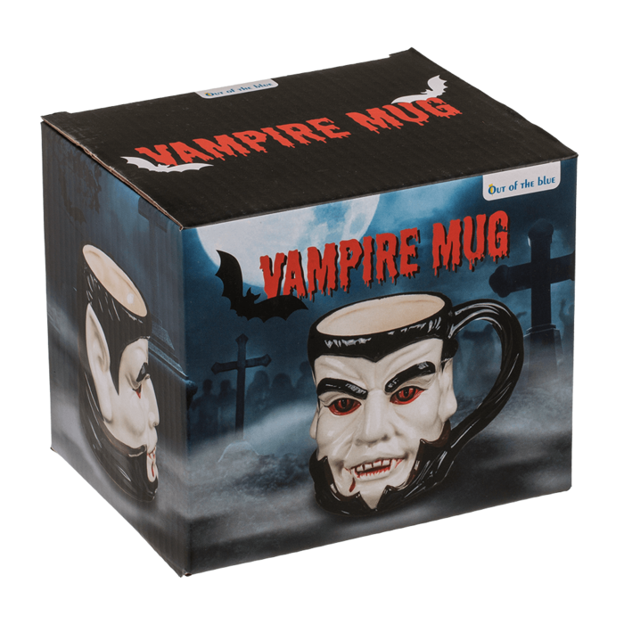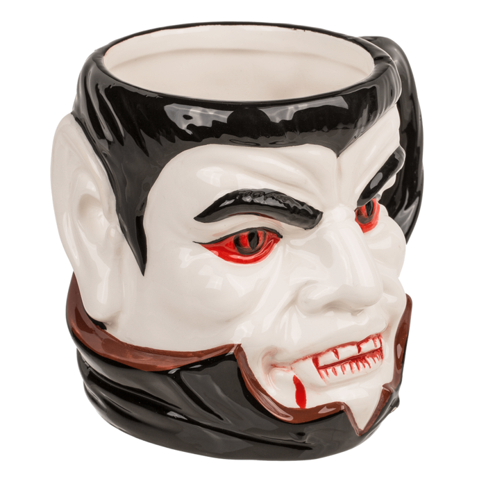 Mugg i stengods med vampyrmotiv. Storlek ca 15 x 11,5 cm. Perfekt för halloween, temadukning eller som dekorativ vardagsmugg.