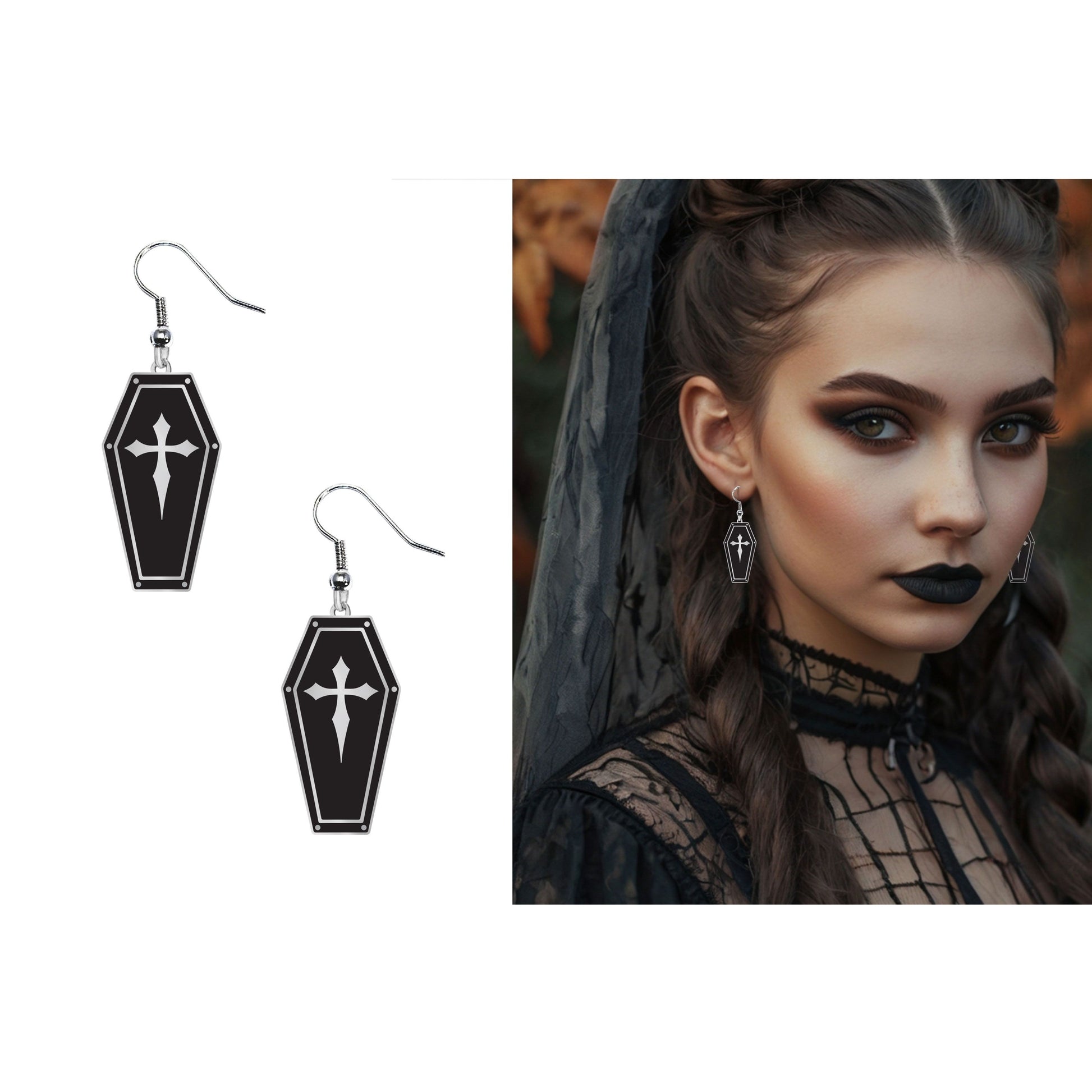 Stilfulla örhängen formade som kistor – en perfekt accessoar för att sätta halloweenkänslan på din outfit. Enkla men effektfulla, och lika fina till fest som till vardags för den som älskar spooky detaljer.