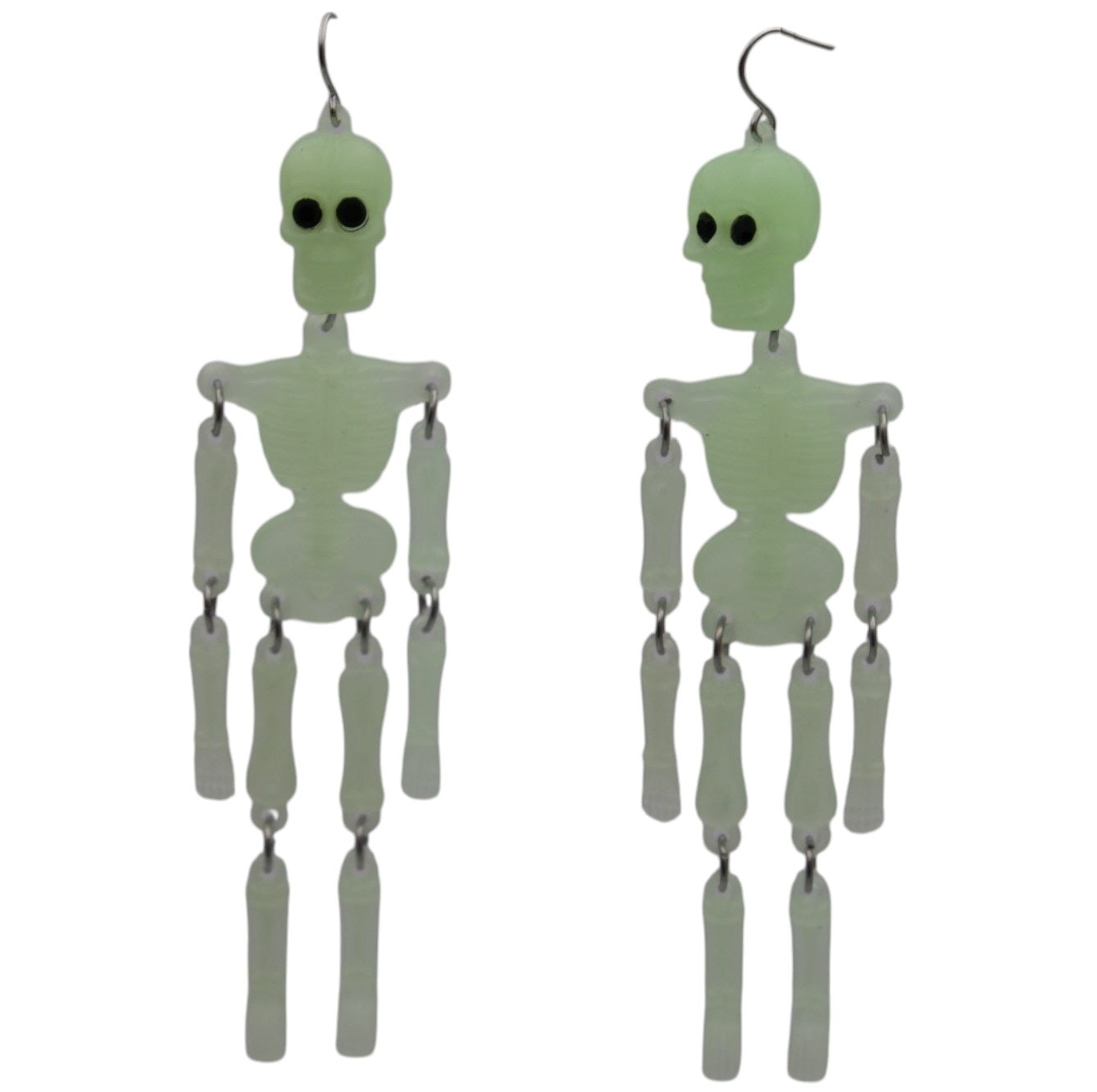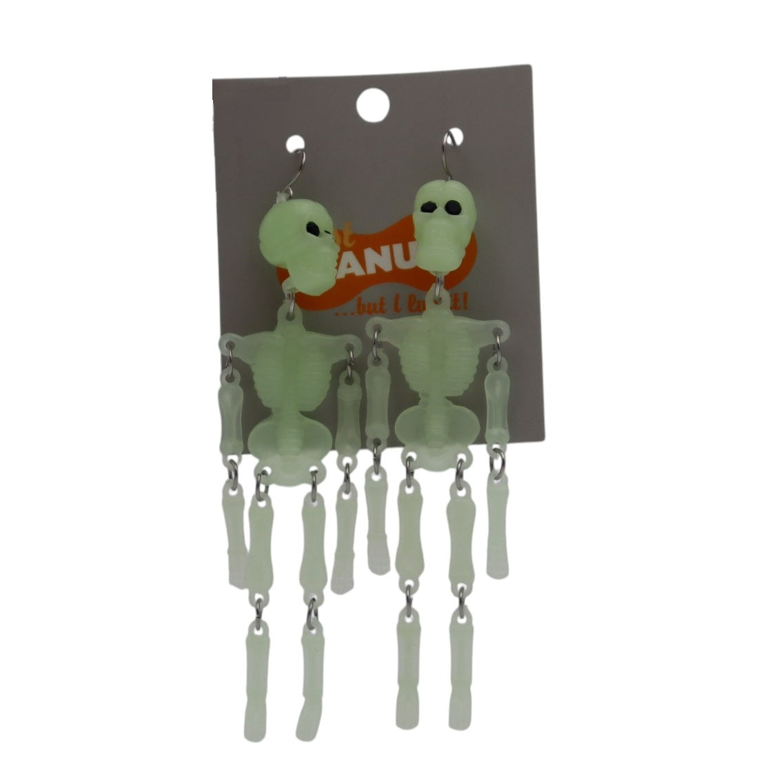 Stick ut i mörkret med dessa coola självlysande örhängen i form av små skelett! Perfekta för Halloween, maskerader eller bara när du vill addera en rolig och lite läskig touch till din outfit.