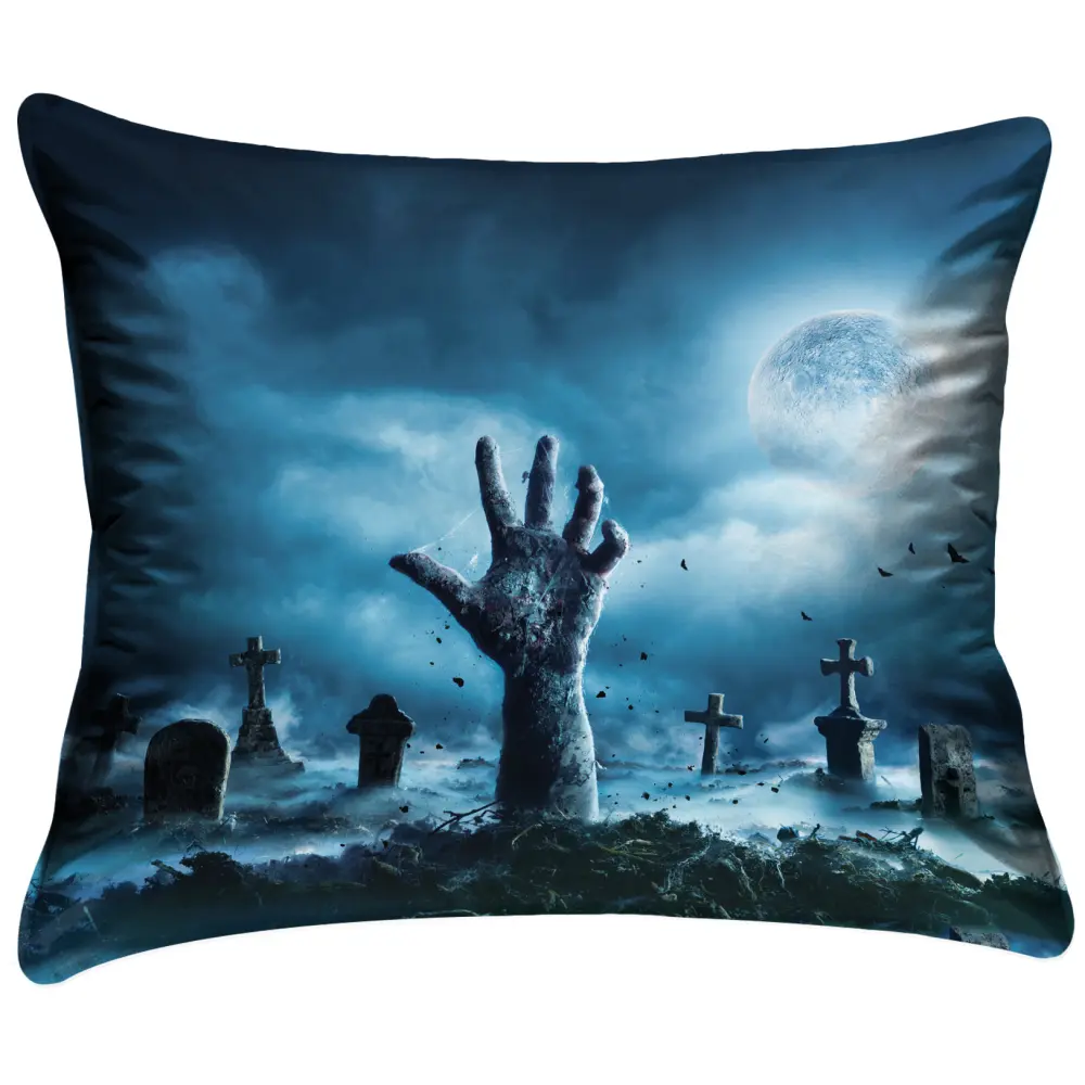 Ett örngott för dig som gillar det lite mörkare – både i stil och motiv. Detta örngott i 100 % bomull har en tryckt design av en dimmig kyrkogård med en zombiehand som sträcker sig upp ur marken, med en stark måne i bakgrunden.