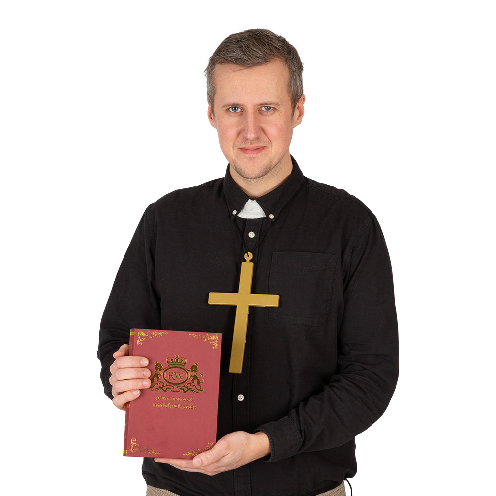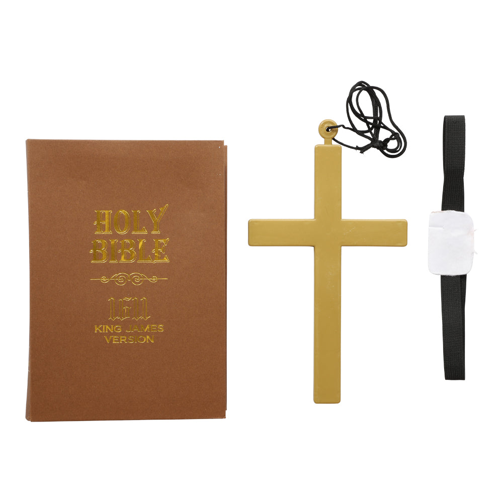Kostymkit för prästlook! Innehåller lös krage, kors och en bok (ej en riktig bok). Perfekt för maskerad, temafest eller Halloween.