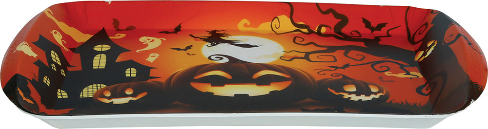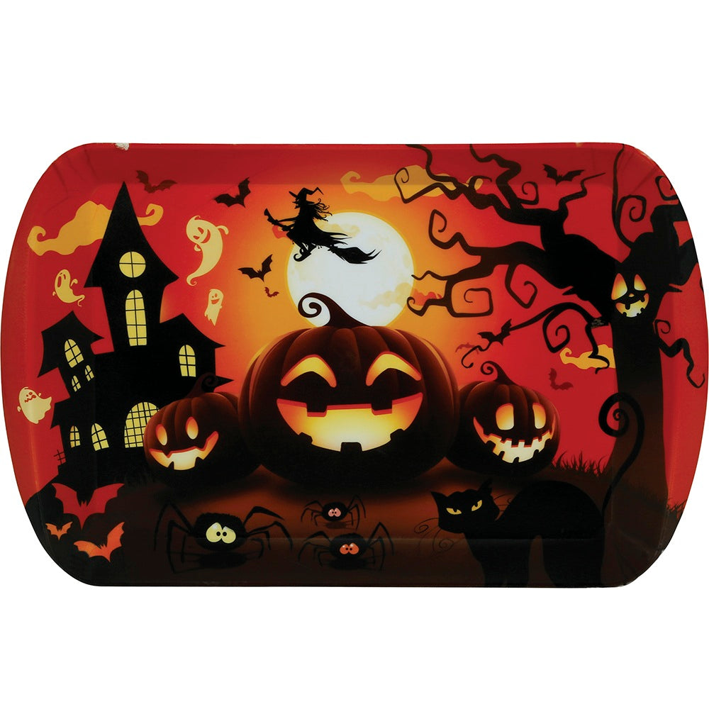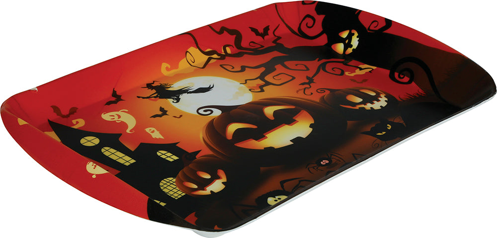 Gör serveringen lite festligare med detta praktiska serveringsfat! Ett rektangulärt serveringsfat i plast med ett lekfullt pumpamotiv – perfekt till Halloween, temafester eller bara när du vill lägga till lite extra färg på bordet.