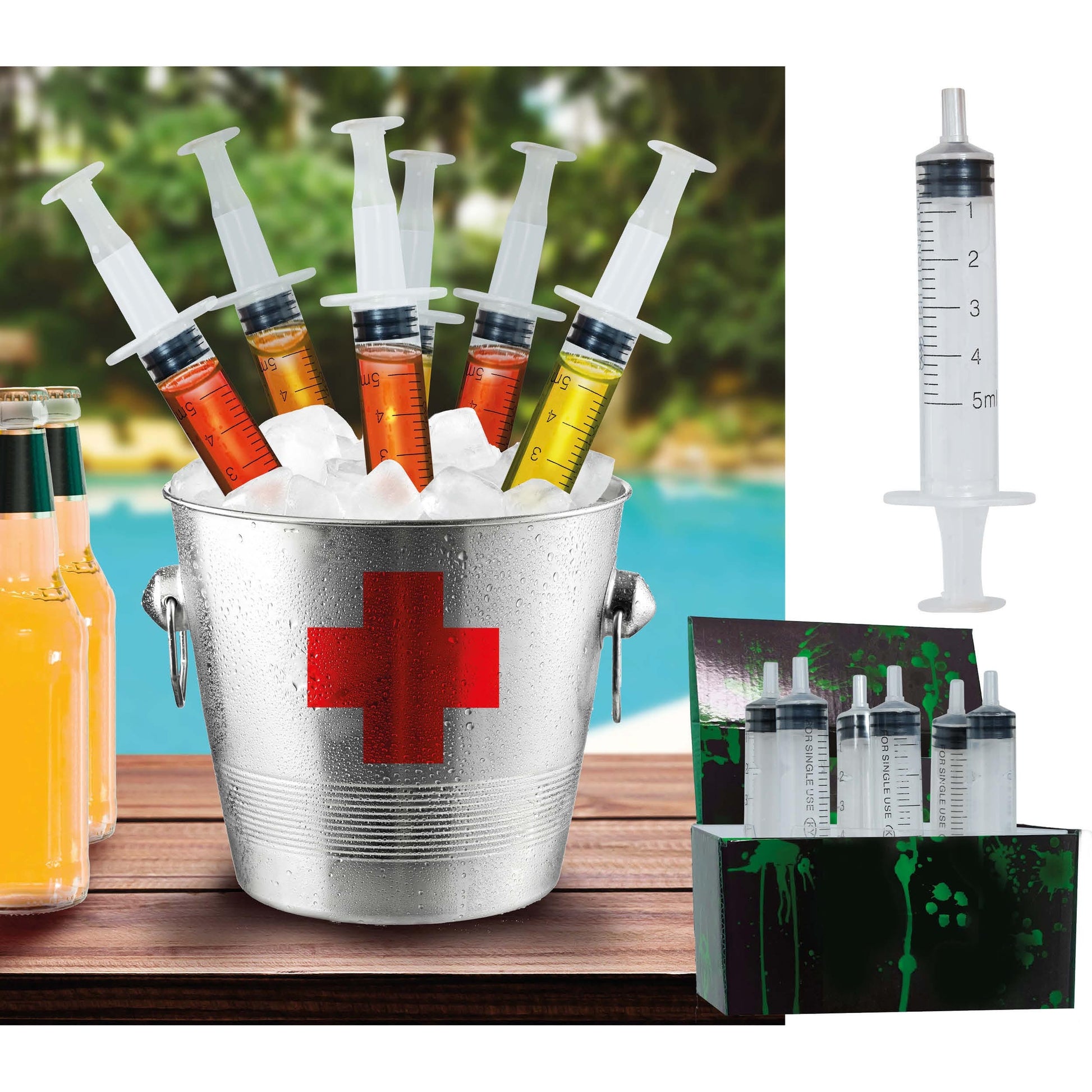 Ett set med 6 sprutor i plast (PVC), perfekta för att servera shots eller andra drycker på ett lite roligare sätt. Varje spruta är 9 cm lång och kan fyllas med valfri vätska.