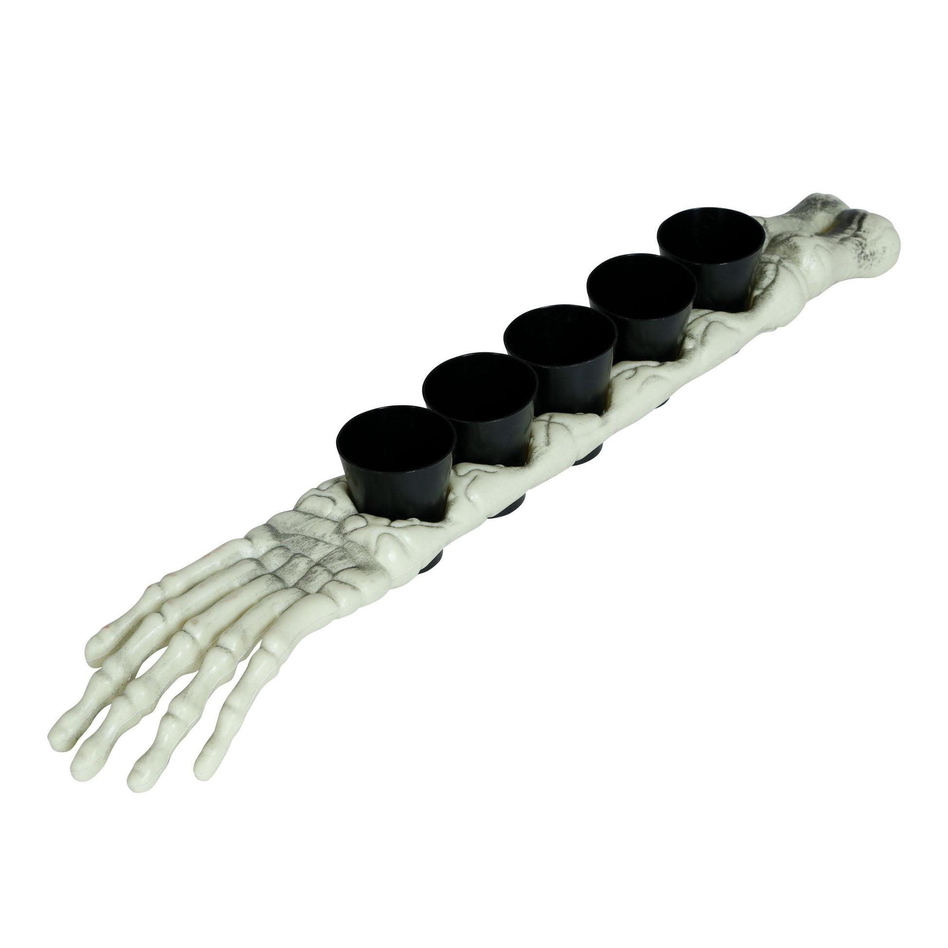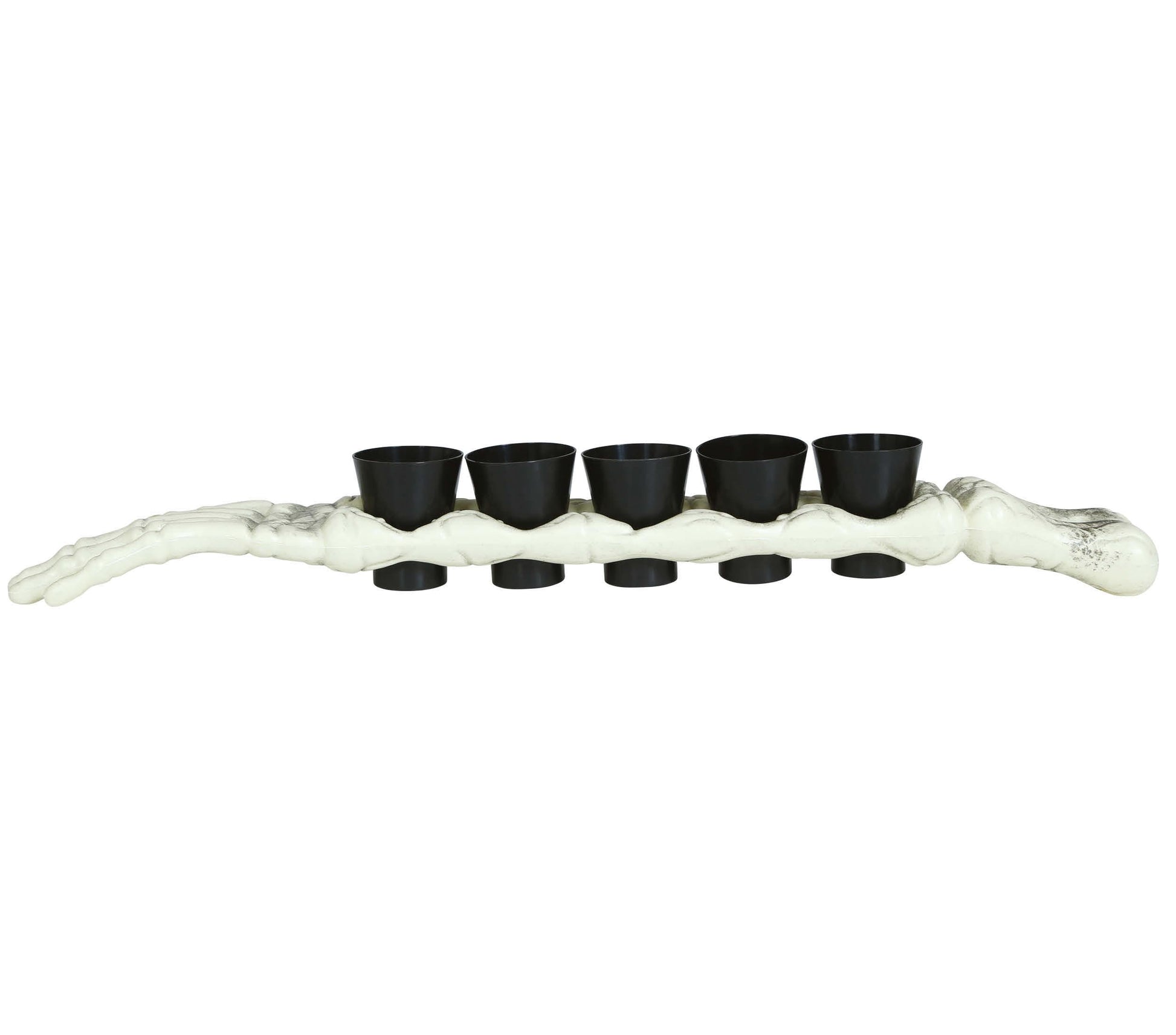 Sätt stämningen på halloweenfesten eller temakvällen med den här dekorativa skelettarmen – komplett med 5 löstagbara shotglas fästa längs benet! En både praktisk och festlig detalj som får garanterat uppmärksamhet vid varje servering.