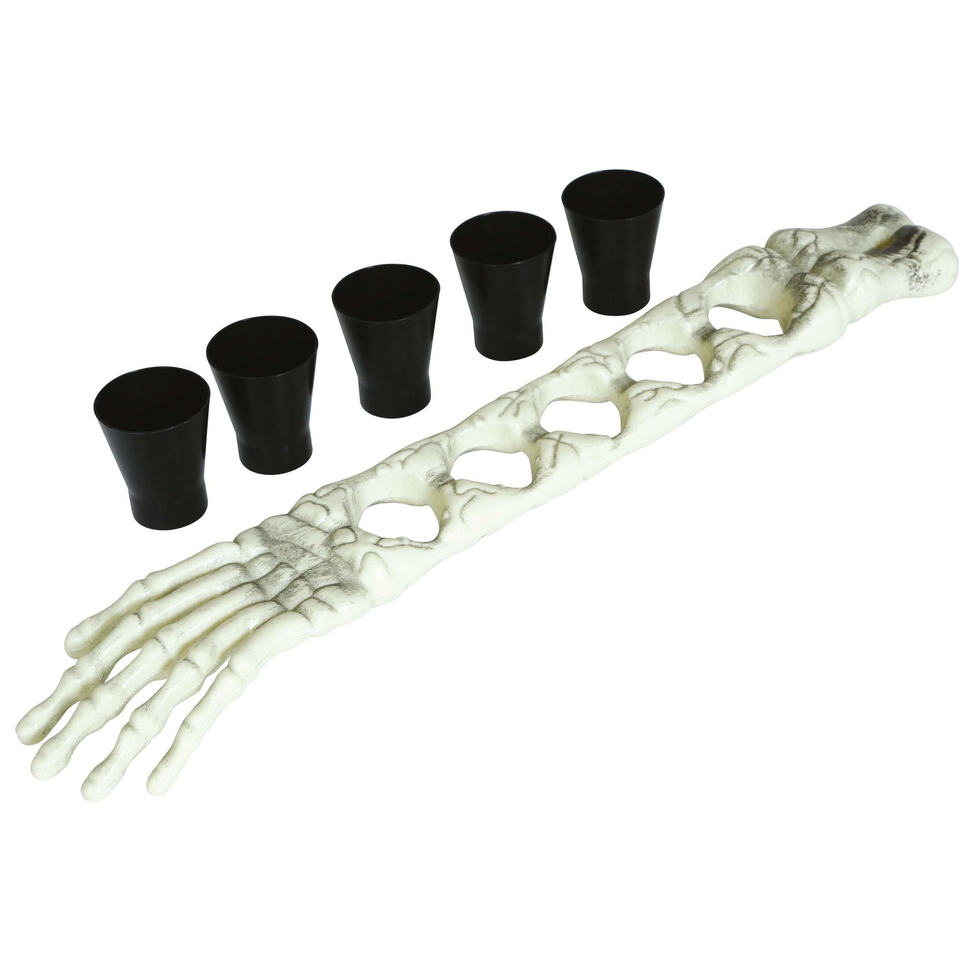 Innehåll: 1 skelettarm + 5 löstagbara shotglas