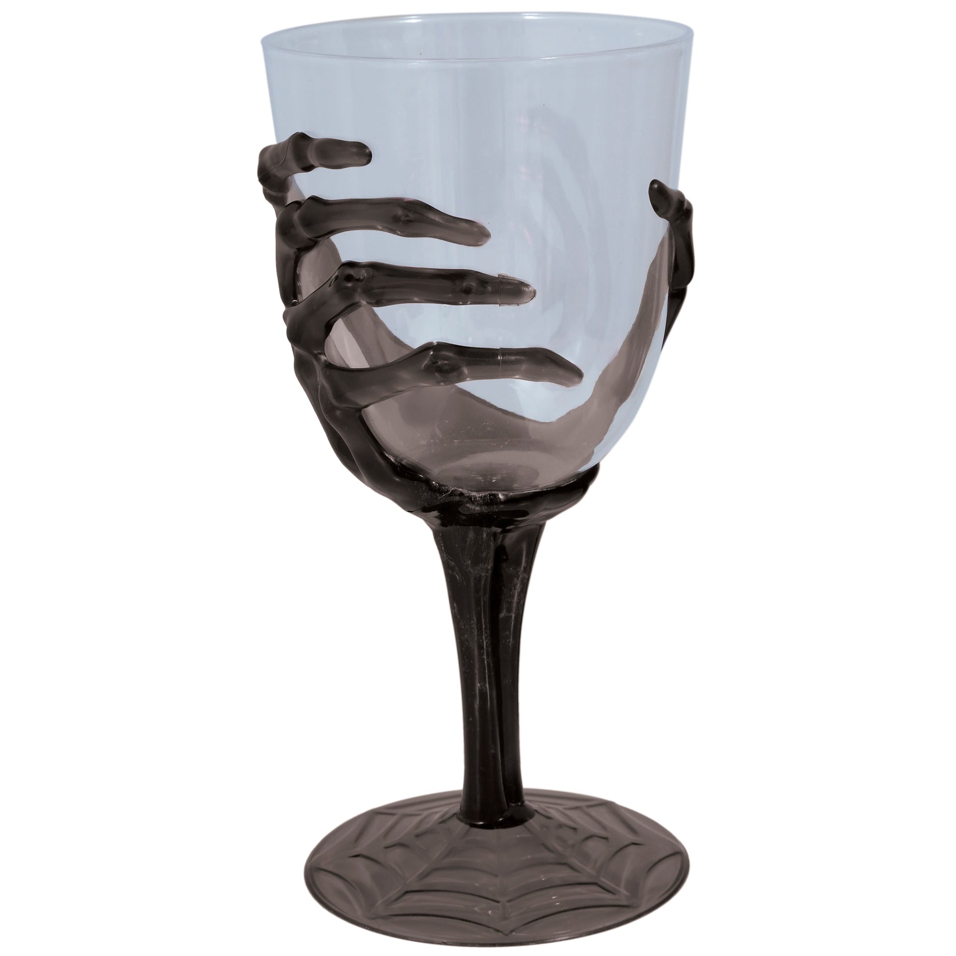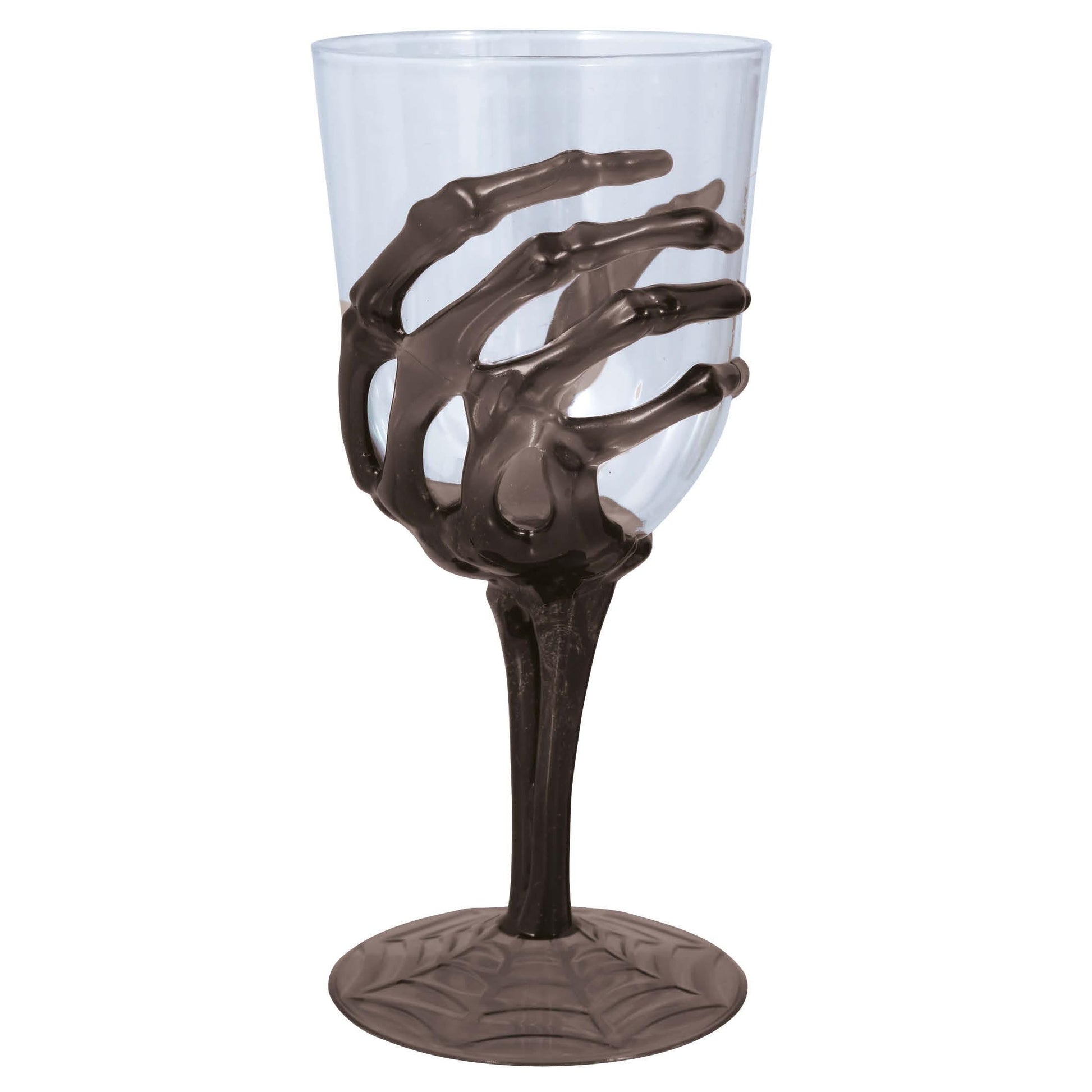 Ett glas som verkligen sticker ut! Den detaljerade skeletthanden utgör glasets fot och ser ut att hålla själva kupan du dricker ur. Perfekt till Halloween, temafester eller som en rolig och lite kuslig dekoration i hemmet.