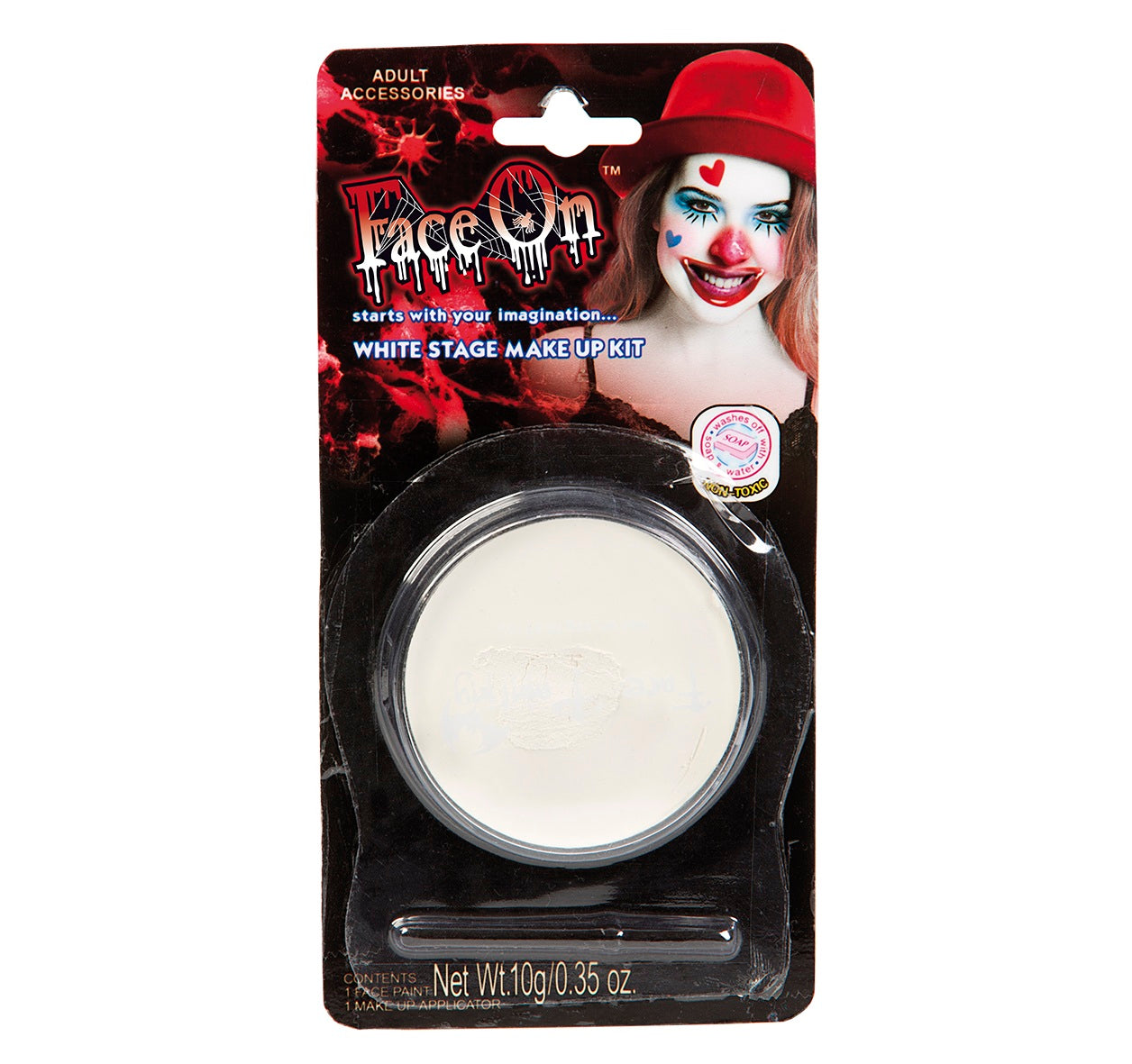 Vit oljebaserad ansiktsfärg – perfekt för täckande och kreativa sminkningar. Makeup-pensel medföljer för enkel och precis applicering. Utmärkt för Halloween, maskerad och teatersmink.